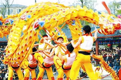 3月13日,演员在“永川龙”民俗文化节开幕式上进行舞龙表演。