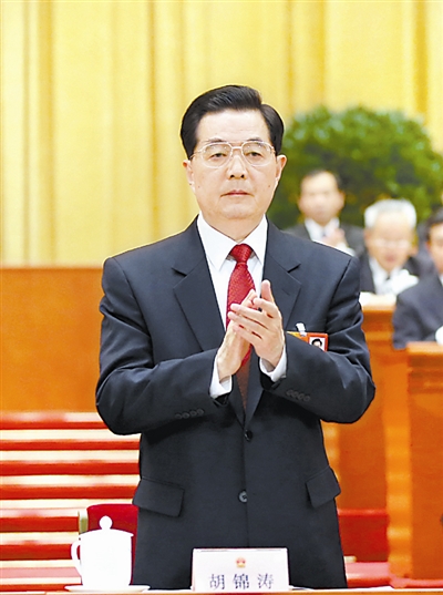 胡锦涛、吴邦国、温家宝、贾庆林等在主席台就座。
