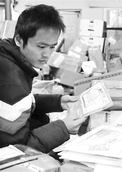 应向阳,23岁,福建师范大学学生,不久前他入选福布斯中文网发布的“中国30位30岁以下创业者”名单。应向阳和他的团队研发出一种类似于超市里寄放物品的储物柜——智能快递终端。如今,该产品已投入生产,并开始安装使用。下图为应向阳(左)在一家快递公司对快件进行投递方面的信息调研。