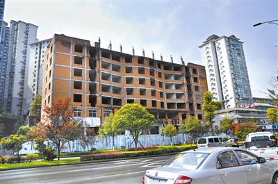 贵州省凯里市城区一幢未完工的烂尾楼“沉睡”近十年至今未拆除。该烂尾楼位于贵州省凯里市凯开大道体育馆附近,建筑立面红砖裸露,楼层顶部还未完工,钢筋裸露在外面,这个“半吊子工程”建筑在此“沉睡”了近十年时间,造成了城市资源的极大浪费。