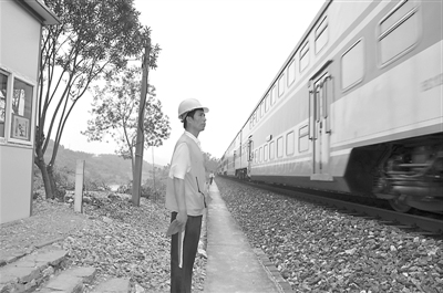 面对着对讲机里一趟又一趟接近列车的呼叫,老董始终沉着熟练地一一回应。