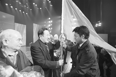 “接过前辈手中的旗帜,我们郑重承诺:传承青年突击队精神,不辱使命,不负众望,为企业发展建功立业!”3月17日,在北京建工三建公司成立60周年庆典上,十余名新青年突击队队长从老队长张百发手中接过队旗,并宣誓。