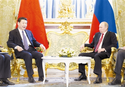 习近平强调,中俄互为最主要、最重要的战略协作伙伴,深化中俄全面战略协作伙伴关系,在两国外交全局和对外关系中都占据优先的战略地位。面对复杂多变的国际形势和依然严峻的国际经济环境,中俄要更加紧密地加强全方位战略合作。双方要重点加大相互政治支持,坚定支持对方维护国家主权、安全、发展利益的努力,坚定支持对方走符合本国国情的发展道路,坚定支持对方发展复兴;全面扩大务实合作,把两国高水平的政治关系优势转化为实际成果,实现共同发展;密切在国际和地区事务中协调配合,坚决维护两国共同战略安全,坚决维护联合国宪章宗旨和原则及国际关系基本准则,维护二战成果和战后国际秩序,维护国际公平正义,促进世界和平、稳定、繁荣。