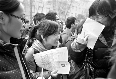3月24日,在南京林业大学考点,几名考生面带微笑进场考试。当日,2013年江苏省公开招考公务员暨选调生招考笔试在全省多个考场同时开考。 据悉,江苏省全省273574人参加笔试,比去年増加44120人,考生人数再创新高。 柳一凡 摄