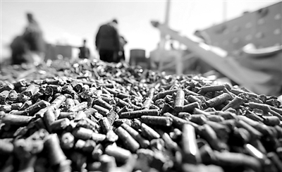 当日,第七届中国节能炉具博览会在河北省廊坊市国际会展中心开幕。由秸秆等农村剩余原材料制成的生物质燃料,成为博览会上的热门产品。新华社记者 邢广利 摄