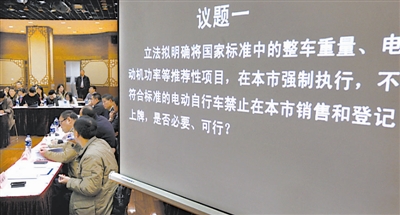 据悉,本次听证会还设置了其他议题,包括是否将电动自行车车身重量限制在40公斤以内、是否把不合标电动自行车归为机动车进行管理等。 新华社记者 凡军摄