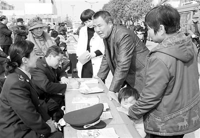 3月27日,山东省枣庄市市中区在枣庄光明广场举行“百姓政务”活动启动仪式。当地22个行政机关、事业单位的工作人员把办公桌搬到活动现场与群众面对面交流,帮助群众解决在生活中遇到的问题。新华社发(孙中喆 摄)