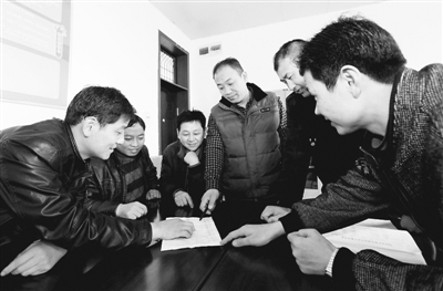 3月27日,安徽淮北矿业集团岱河矿业公司采煤一区生产二班职工耿永亮(左一),盯着班长魏向阳(中)手中的计分单,请求手下留情不要扣分,因为他想当“班组安全之星”!这想法是企业本月初在各班组实施“双培计划”后才有的。“双培”,即把员工培养成明星,把明星培养成党员。为争当“班组安全之星”,一向马虎的耿永亮从月初努力到现在,眼看目标就要实现,没想到这次随手把一根没用完的塘材丢在了刮板机里的动作被班长发现了。这不,后悔不已的耿永亮诚恳地向班长和工友们认错,保证绝不再犯!大家聚在一起讨论后,决定给耿永亮一次机会。 王明明 摄