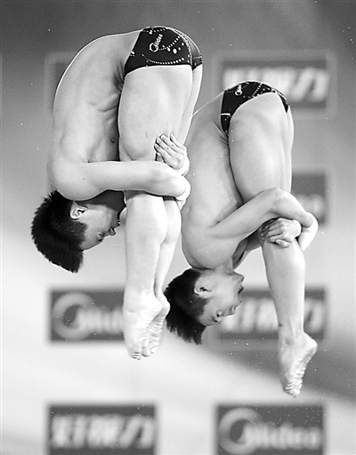 3月28日,在全国跳水冠军赛暨全运会预选赛男子双人十米台的比赛中,广东队选手谢思埸/陈艾森夺得冠军。 新华社记者 程敏 摄