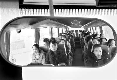 3月28日,山东即墨市温泉街道办事处农民工乘免费班车上下班。青岛即发集团斥资600余万元购买了15辆大巴车投入使用,每天免费接送1000余名农民工上下班,极大地改善了他们的乘车环境,让他们感受到企业的尊重。青岛即发集团是国家大型纺织服装企业,拥有职工2万余人,其中一线工人90%是农民工,近年来该企业的职工流动率仅为1%。梁孝鹏 摄