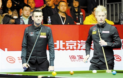 图为罗伯逊(右)和塞尔比在比赛中。本报记者 许之丰 摄