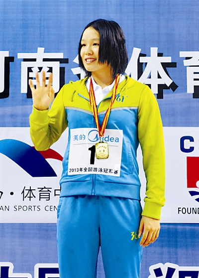 当日,在河南郑州进行的2013年全国游泳冠军赛暨全运会预选赛女子400米自由泳决赛中,浙江队选手邵依雯以4分06秒15的成绩夺得冠军。新华社记者 朱祥 摄