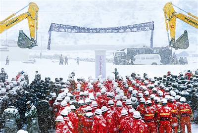 4月4日,西藏自治区在拉萨墨竹工卡县斯布村举行仪式,悼念3月29日山体滑坡中遇难的83名矿工。自治区领导、参加搜救的部队官兵、当地群众及部分遇难矿工的家属手持白花、哈达,依次敬献在专门为遇难矿工立的碑前。 新华社记者 觉果 摄