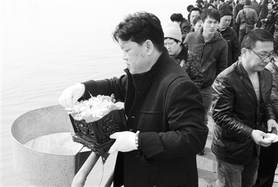 4月1日,在长江江面上,安徽省铜陵市市民将亲人的骨灰撒入长江。据了解,骨灰撒江活动旨在倡导移风易俗、厚养薄葬、保护环境,推进“绿色生态葬法”。铜陵市自1999年首次开展免费骨灰撒江以来,已进行了10次,全市骨灰撒江总人数达244名。 刘敏 摄