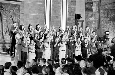 4月8日是以色列大屠杀烈士和英雄纪念日,以色列举行一系列活动纪念在二战大屠杀期间英勇反抗的人们。4月7日晚,纪念活动在亚德瓦谢姆大屠杀历史博物馆正式启动。有2000人出席了纪念仪式。图为合唱团在演唱纪念歌曲。张瑾 供图