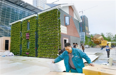 当日,由重庆建设单位联合英国AllDesiqn,融合英国贝丁顿社区零碳理念打造的“伦敦·重庆低碳之家”实体体验馆,在重庆南坪会展中心搭建完成。工人们正在抓紧时间清扫卫生及安装室内家具,并于4月11日至14日,第六届中国(重庆)国际绿色低碳城市建设与建设成果博览会期间开放。