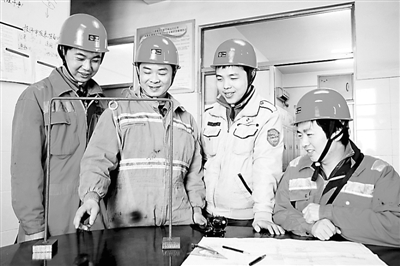 “你看,卸船机上的抓斗就像这只乒乓球,在力的作用下不停地摆动。作为卸船机司机,我们不但要掌控好小车,实现抓斗的平稳过渡,还要寻找最佳契合点,发挥联动作用,这样才能进一步提高接卸效率。”4月8日,宁波港股份有限公司北仑矿石码头分公司卸船机运行四班班长郑文达(左二)通过自制的模型,向新员工讲解“郑文达操作法”。通过“快移、联动、速提”,他就将卸船机一个循环的作业时间从原先的65秒缩短到55秒,有时甚至达到45秒,提速20%以上。照此计算,一个8小时的工班能多接卸2000吨左右的矿石。
