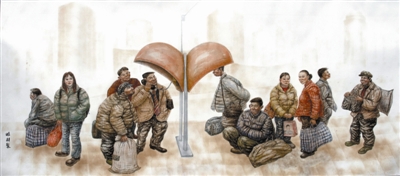 其三是“中国画的神韵”与“西画的立体感”的融合。虽然,孙晓材的画借鉴西画的成分着实不少,但是一看便知是中国画。这不仅是由于作者都是以中国人为题材的,而且,孙晓材还运用了国画的“知白守墨”的布置手法。这些中国画中的人物,几乎都是被置于“留白”的空间之中,即使有背景的点缀也是相当抽象的,的确达到了“计白当黑”的效果。孙晓材用新的审美理念和审美情趣,打造了独特的艺术语言。(刘悦笛)