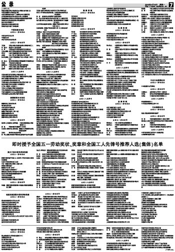 即时授予全国五一劳动奖状、奖章和全国工人先锋号推荐人选(集体)名单
