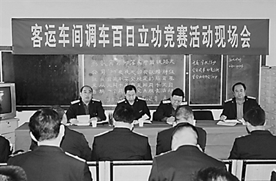 4月7日,郑州机务段客运车间在枢纽车队组织召开调车百日立功竞赛活动现场会,总结2013年首个调车安全百日工作,并提出下一个百日立功竞赛落实措施。高超 摄
