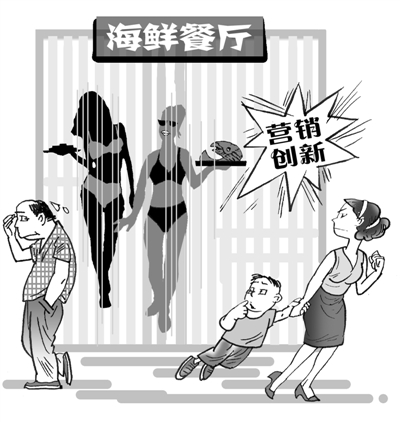 名为海鲜主题餐厅,就索性用“比基尼”配合阳光、沙滩、海岸、热浪的装修风格,营造坐在海滩上吃饭的气氛,或许这样的营销创新手段初衷很好,但从“创新”之后,50多个服务员走了一半的结果中,其效果或可见一斑。“比基尼”不是洪水猛兽,餐厅工作服当然也可以有自己的特色,可当“比基尼”成了整齐划一的工作服,就难逃暧昧与诱惑之嫌。说到底,创意营销,还是应以公众是否接受为底线。聪明的商家还是要多在食材选取、烹调手法、贴心服务上多下功夫,一时的卖点或噱头,只会恼羞了食客,难换来实惠。