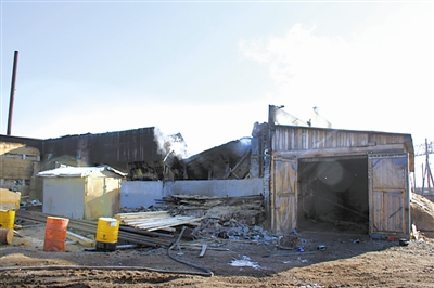 4月14日,俄罗斯伊尔库茨克州济马市一家中俄合资的木材加工厂发生火灾,造成4名中国工人死亡,1名中国工人失踪,5名中国工人被烧伤。受伤者中有3人伤势严重。这是被烧毁的中国员工宿舍(2013年4月15日摄)。 新华社发(逯凤勤 摄)