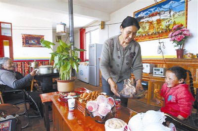 “我们打心底感谢国家。”才仁求吉说,他们家经历过两次重建,上一次是2004年,玉树突发山洪,家里的水齐腰深,他母亲还是解放军从房顶救出去的。“这次地震后,也得感谢志愿者和好心人。地震前两天,家里啥吃的都没有,附近一餐馆老板送来两个馒头和一碗粥,这在当时是很珍贵的东西。”第三天下午,志愿者送来了一顶帐篷和食物,“他们还时不时送来米面油,政府还给三个孩子每人每年发1000元钱的补助,有了他们和国家这个靠山,我们心里踏实多了。”