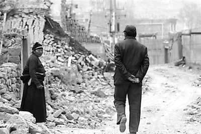 2010年4月20日上午,江勇索南走在结古镇的废墟上。