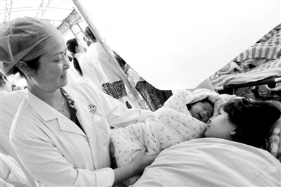 这一刻,一名孕妇在雅安市人民医院的车棚内生下“地震宝宝”,在不可抗拒的天灾面前,幼小生命显示了顽强的力量。