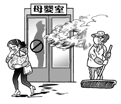 吸烟有害健康,保护母婴不受二手烟之害更为重要。社会各界一直呼吁,人人都应为禁烟尽心尽力,有些地方还制定了地方性法规。然而总有一些人在公德面前不肯“委屈”一下自己,我行我素。莫以善小而不为。落实公共场所禁止吸烟的规定,除了个人自律外,加强管理很重要。如果各单位切实守土有责,管好分内的事,不推诿不敷衍,多劝说多制止,坚持下去就会有成果。