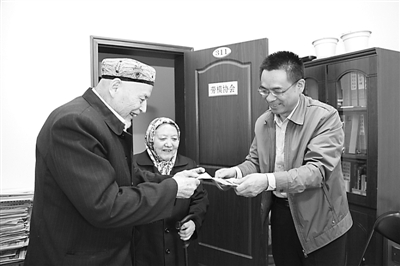 买买提·波拉提是原乌鲁木齐市蔬菜公司的退休职工,1956年因见义勇为与歹徒英勇搏斗、身负重伤被评选为全国劳模。本报记者 尹雪梅 本报通讯员 景双善 摄