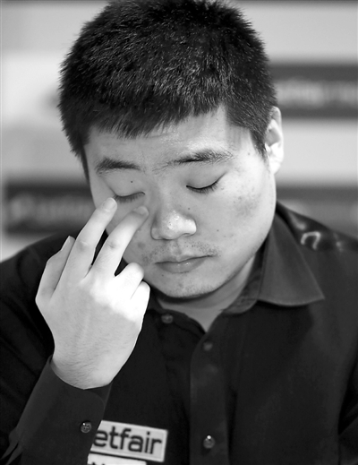 5月1日,中国选手丁俊晖在赛后新闻发布会上。