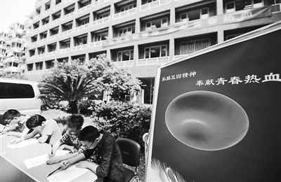 5月2日,杭州西溪街道、浙江省血液中心和浙江省第二测绘院等多家单位联合发起以“弘扬五四精神 奉献青春热血”为主题的五四青年节义务献血活动。活动倡导“我健康 我献血”的理念,吸引了西溪街道辖区单位近200名青年参加义务献血,同时还有20多人主动报名愿意捐献造血干细胞。 新华社记者 徐昱 摄