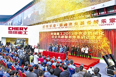 “奇瑞重工社企共建服务体系”4月21日在郑州全国农业机械展会上正式启动,行业领导、专家及来自200多家合作社代表参加了启动仪式,共有136家农机专业合作社组织与奇瑞重工达成社企共建协议。这种共建共赢的合作,不仅可以实现优势互补,而且还能使农机制造企业和农机专业合作社形成合力,开创一种促进中国农机化发展的新模式。