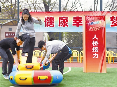 人桥接力 , 趣味盎然 。