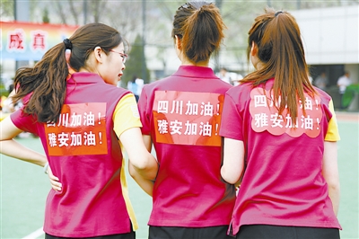 在各支参赛队伍中,四川队无疑最引人关注——每位参赛队员背上都印有“四川加油,雅安加油”的标语。“我们作为来京建设者,不能回去进行抗震救灾,但想通过这样的方式告诉雅安人民,我们在北京也一直关注着他们”,四川队领队谭骏向记者表示:“除了工作,也需要通过运动来放松自己的身心,不要总觉得自己是外来者,要有建设者的光荣感在里面,才能更好地融入北京。”