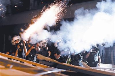 当地时间6月4日,土耳其伊斯坦布尔,防暴警察朝示威者发射催泪弹。东方IC供图