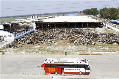 吉林省德惠市吉林宝源丰禽业有限公司“6·3”特大火灾事故现场。李亦青 摄