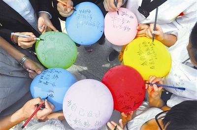 6月5日,山东聊城大学毕业大学生代表共同用笔抒写自己的“中国梦”,传递勇敢追求梦想的正能量。赵玉国/CFP