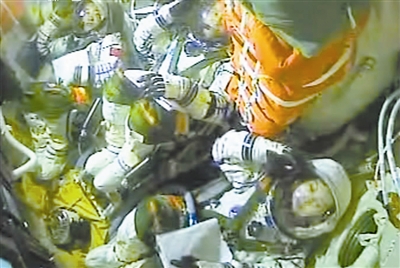 “神舟十号进舱!”随着零号指挥员一声令下,3名航天员依次进入返回舱,连接话音接插件,连接航天服通气软管、供氧软管……一连串动作干净利索,航天员的脸上写满了自信与从容。