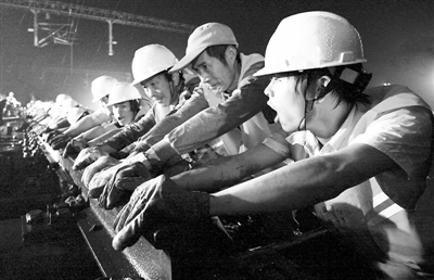 日前,在杭州东站的施工工地上,农民工外协队伍中的道岔工正齐心协力整体推移轨道,这“壮观”场面是整个施工过程中的一个缩影。据悉,由中铁四局等承建、历经4年半施工的杭州东站已进入试运营阶段。