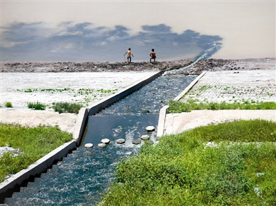 6月16日,在重庆奉节县,网民看见一条通往长江三峡水库的沟渠,正流淌着污水。污水源是上面的饮食一条街,有20多家餐馆聚集。这条街的生活污水没有经过净化处理直接注入长江。华龙摄/东方IC