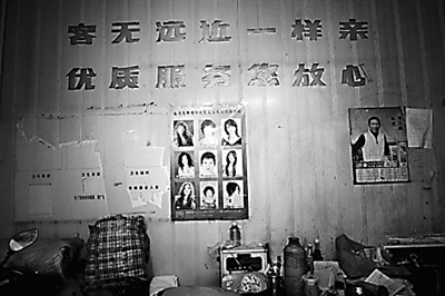 店内旧式门框、白瓷脸池、旧海报、白色制服 。