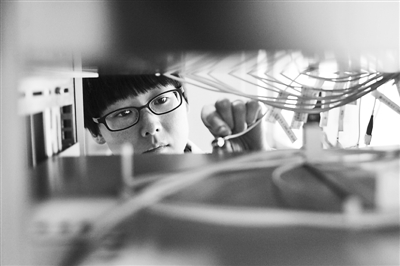 在兰州铁路局兰州通信段,每天和通信光纤打交道的技术人员个个练就了能将直径0.07毫米以内的纤芯迅速实现无缝接续的本领,因此也被称为“在头发丝上雕刻”的铁路通信工作者。6月13日,在兰州通信段兰州传输室机房里,技术人员任远在操作光纤通信设备。