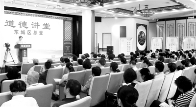 6月18日,北京市东城区环卫工人郭倞、文明引导员胡雅丽、教师张凯亮等在国子监彝伦堂,分别以“我的梦·中国梦”为主题讲述了把“中国梦”植根于“普通人微梦想”的切身体会。以倡导用“身边人讲身边事、身边人讲自己事、身边事教身边人”的形式,引导市民“积小善为大善”、“积小德为大德”,自觉成为道德传播者和践行者的大主题。 王 硕 摄
