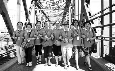 6月22日,志愿军子女在中朝友谊桥上合影留念。
