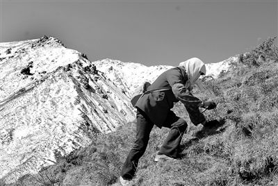 采挖冬虫夏草非常辛苦。“草民”得在高海拔雪山上风吹日晒,平均每天跑上20多公里,还得匍匐在地上不停寻找。