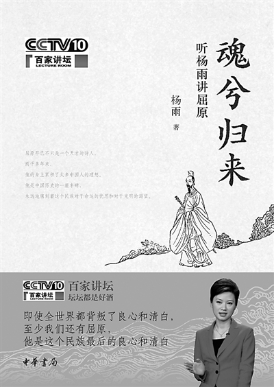 本报讯 (记者 邓崎凡)近日,中南大学教授杨雨将她在《百家讲坛》“端午时节话屈原”系列讲座集结成《魂兮归来》一书,由中华书局推出,该书讲述了作为浪漫文学始祖、爱国思想先驱、香草美人情意、正道直行精神代表的屈原的一生。