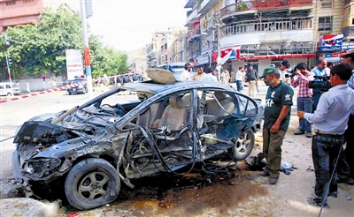 当地时间6月26日,巴基斯坦卡拉奇市发生爆炸事件,爆炸的攻击目标是该市一名高级法官的车队,目前事件已经造成7人死亡,包括法官巴卡尔在内的45人受伤。吉平 供图