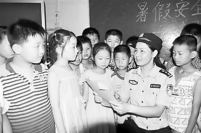 为了让小学生度过一个快乐的暑假,近日,河南正阳县巡特警走进辖区内的小学校园,专门为孩子们举办安全知识讲座,并发放宣传手册。